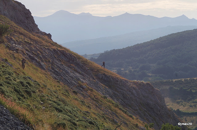 Y todo porque un día antes vimos que por allí arriba se movía una familia de rebecos cantábricos (Rupicapra pyrenaica parva). Este rebeco es más pequeño que su congénere el pirenaico, también en la longitud de sus cuernos. La foto está tomada por el amigo Íñigo con el super-zoom de su cámara.