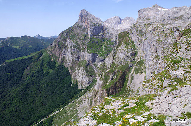 Desde los asomaderos de la estación esta magnífica vista de Peña Remoña y abajo el zigzag de uno de los senderos.