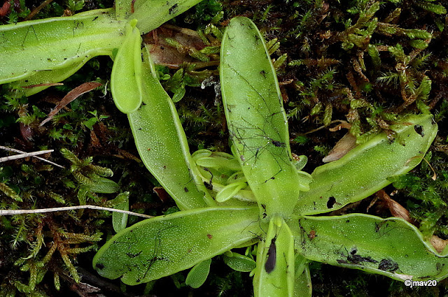 Planta carnívora con insectos ya cazados en sus pegajosas hojas: Pinguicola vulgare o grandiflora, no estaba en flor.