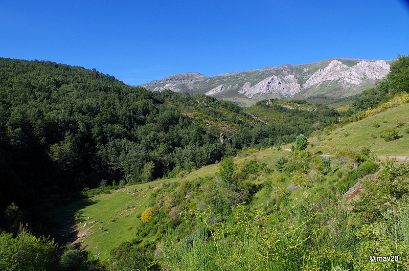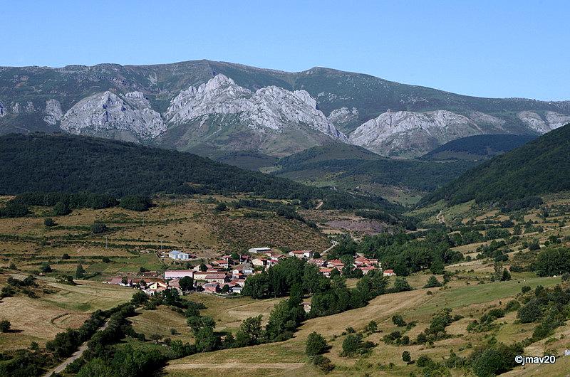Y mirando hacia el alto Pisuerga el pueblito de Santa María de Redondo -donde está el hotelito de nuestro paisano- y de fondo la Sierra de Peña Labra. Por allí arriba queda la Cueva del Cobre.
