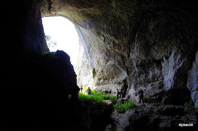 El sendero aprovecha una gran cueva que, a modo de escalera interior, nos se sube a los cortados calizos.