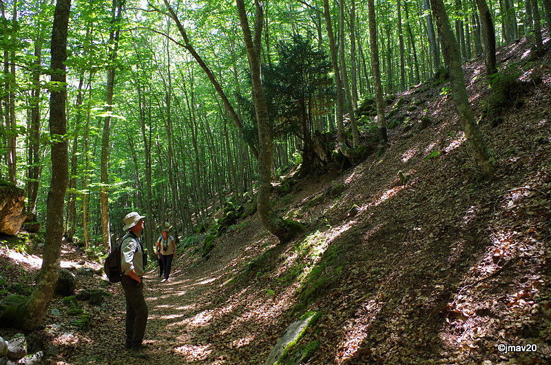 El sendero sube por el hayedo de la vertiente norte de Peña Cantoral, donde ya vemos algunos tejos sueltos de mediano porte.