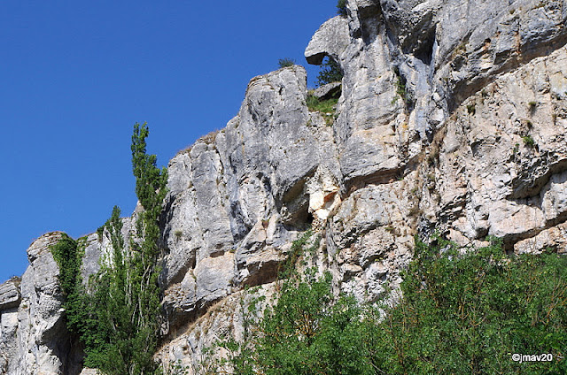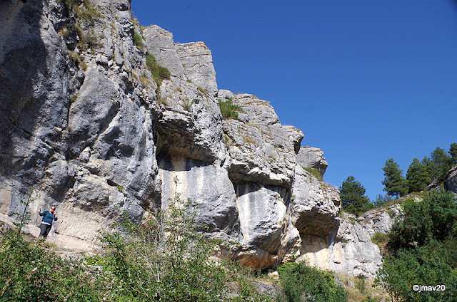 En sus cortados cría una colonia de buitre leonado. Pueden verse los puntos marrones a lo largo de esa fisura en la roca.