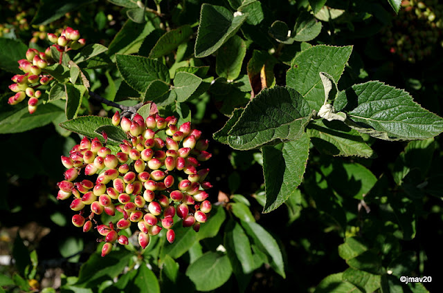 Viburnum lantana, una especie de durillo diferente al nuestro, cuyos frutos son de un color azul metálico.